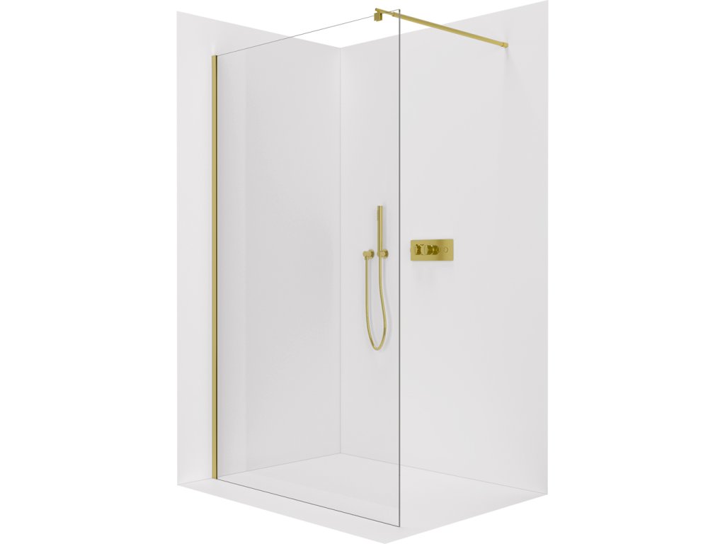 CERANO - Sprchová zástěna Walk-in Onyx Round L/P - 8 mm - kulatá vzpěra - zlatá kartáčovaná, transparentní sklo - 160x200 cm