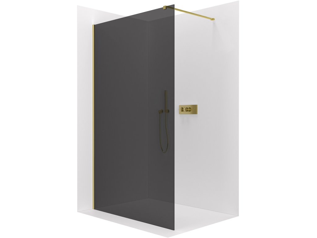 CERANO - Sprchová zástěna Walk-in Onyx Cube L/P - 8 mm - hranatá vzpěra - zlatá kartáčovaná, grafitové sklo - 40x200 cm