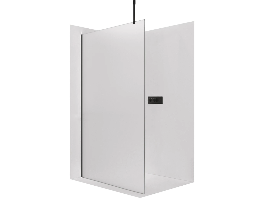 CERANO - Sprchová zástěna Walk-in Onyx Top Cube L/P - 8 mm - hranatá vzpěra - černá matná, mléčné sklo - 30x200 cm