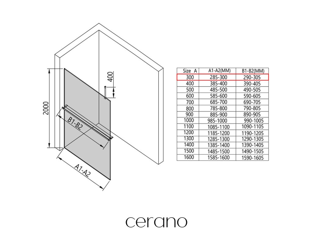 V rámci této série nabízíme širokou škálu rozměrů, abychom uspokojili různé potřeby našich zákazníků. Všechny sprchové kouty, dveře a zástěny značky Cerano jsou plně kompatibilní se sprchovými vaničkami Cerano ve stejných rozměrech, což zajišťuje bezproblémovou instalaci a dokonalé sladění. Sprchový kout lze navíc instalovat flexibilně – buď na odpovídající sprchovou vaničku, nebo přímo na podlahu podle vašich preferencí a možností koupelny.