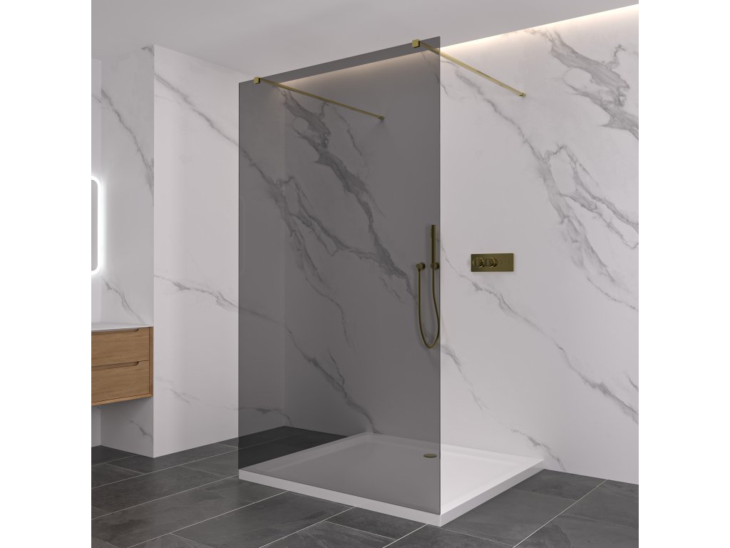 CERANO - Sprchová zástěna Walk-in Onyx Duo L/P - 8 mm - hranatá vzpěra - zlatá kartáčovaná, grafitové sklo - 150x200 cm