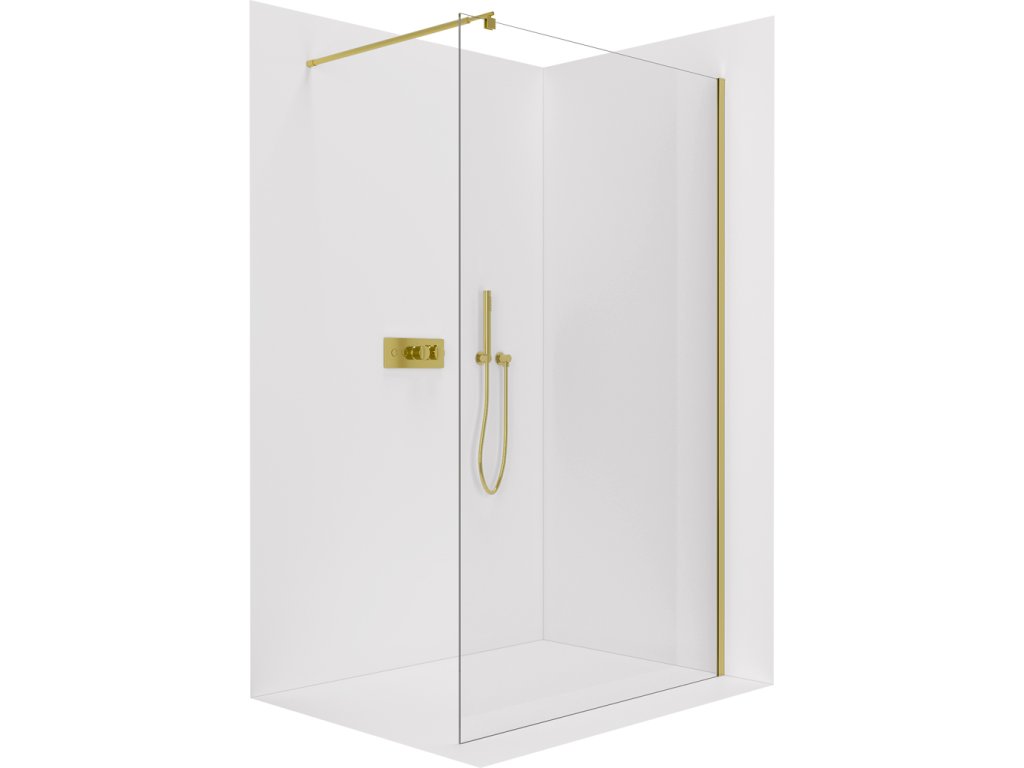CERANO - Sprchová zástěna Walk-in Onyx Round L/P - 8 mm - kulatá vzpěra - zlatá kartáčovaná, transparentní sklo - 50x200 cm