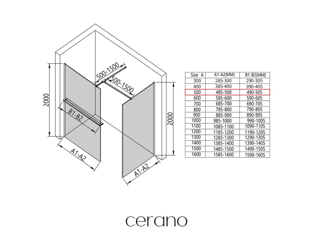 V rámci této série nabízíme širokou škálu rozměrů, abychom uspokojili různé potřeby našich zákazníků. Všechny sprchové kouty, dveře a zástěny značky Cerano jsou plně kompatibilní se sprchovými vaničkami Cerano ve stejných rozměrech, což zajišťuje bezproblémovou instalaci a dokonalé sladění. Sprchový kout lze navíc instalovat flexibilně – buď na odpovídající sprchovou vaničku, nebo přímo na podlahu podle vašich preferencí a možností koupelny.