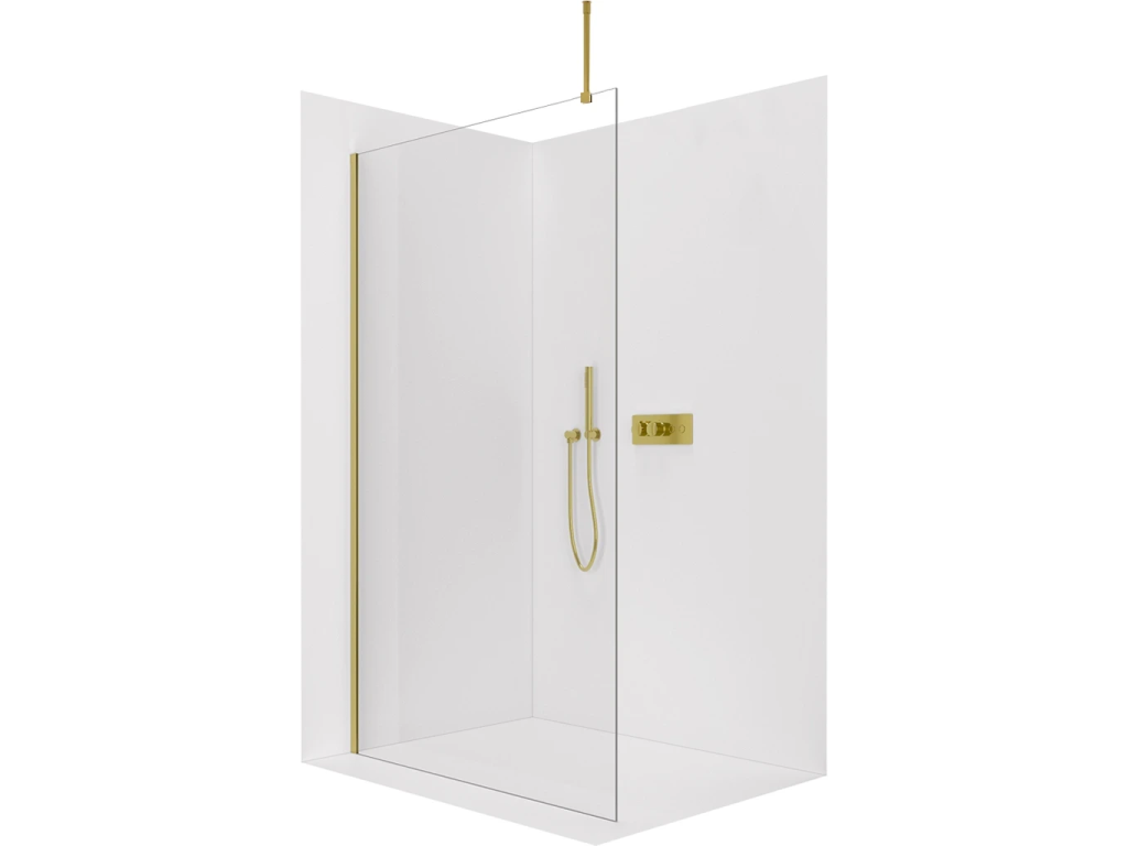 CERANO - Sprchová zástěna Walk-in Onyx Top Round L/P - 8 mm - kulatá vzpěra - zlatá, transparentní sklo - 50x200 cm