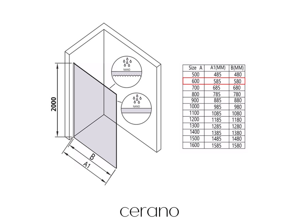 V rámci této série nabízíme širokou škálu rozměrů, abychom uspokojili různé potřeby našich zákazníků. Všechny sprchové kouty, dveře a zástěny značky Cerano jsou plně kompatibilní se sprchovými vaničkami Cerano ve stejných rozměrech, což zajišťuje bezproblémovou instalaci a dokonalé sladění. Sprchový kout lze navíc instalovat flexibilně – buď na odpovídající sprchovou vaničku, nebo přímo na podlahu podle vašich preferencí a možností koupelny.