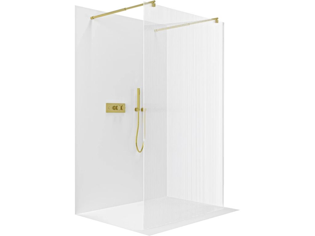 CERANO - Sprchová zástěna Walk-in Onyx Duo L/P - 8 mm - kulatá vzpěra - zlatá, rýhované sklo - 60x200 cm