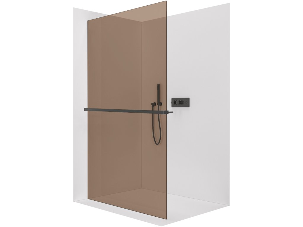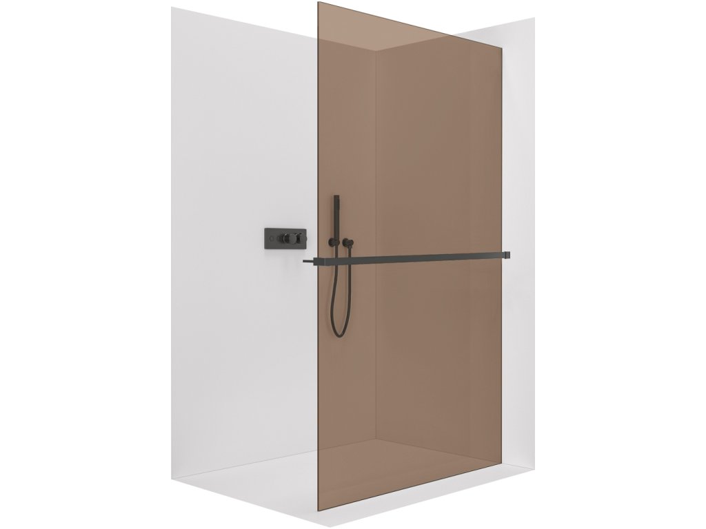 CERANO - Sprchová zástěna Walk-in Crystal L/P - 8 mm + polička/držák na ručníky - bezvzpěrový systém - černá matná, bronzové sklo - 70x200 cm
