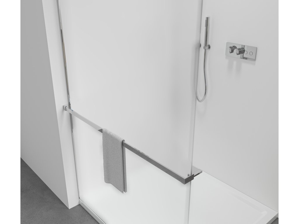 Chytré řešení 2v1 pro sprchové zástěny. Z vnější strany držák na ručníky, zevnitř praktická polička na kosmetiku a drobnosti – vše hned po ruce. Vhodné pro sprchové zástěny s maximální tloušťkou skla 8 mm. Nastavitelná šířka od 30 do 160 cm podle typu zástěny. Úspora místa, moderní vzhled a praktické využití v jednom.
