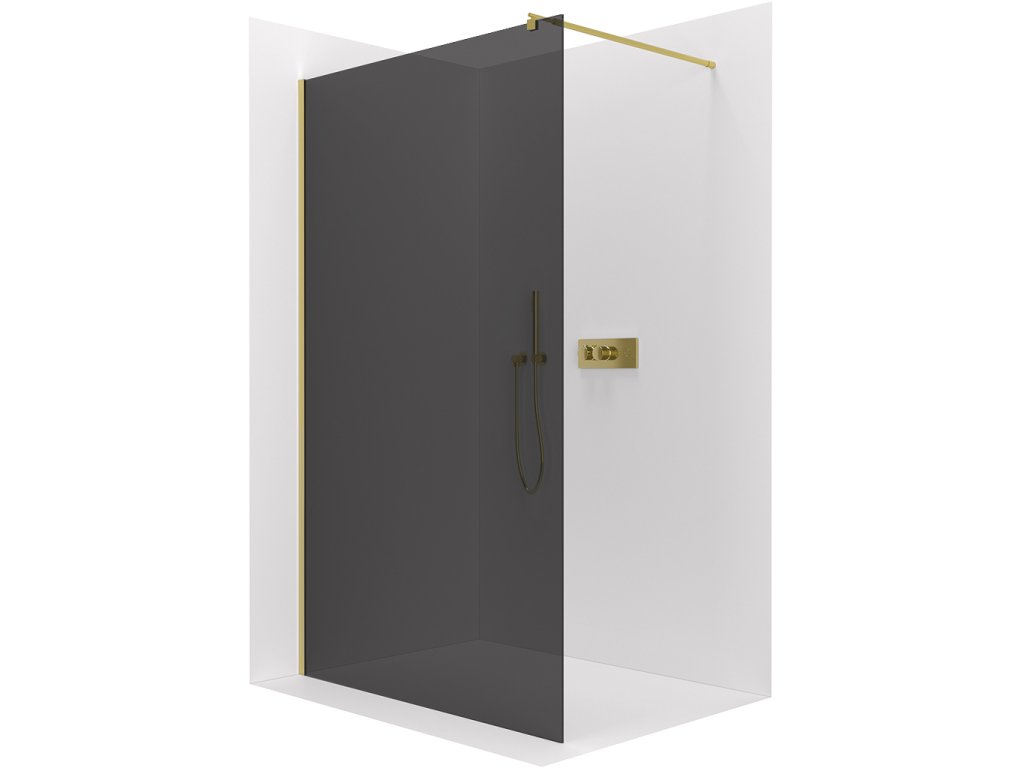 CERANO - Sprchová zástěna Walk-in Onyx Round L/P - 8 mm - kulatá vzpěra - zlatá kartáčovaná, grafitové sklo - 70x200 cm