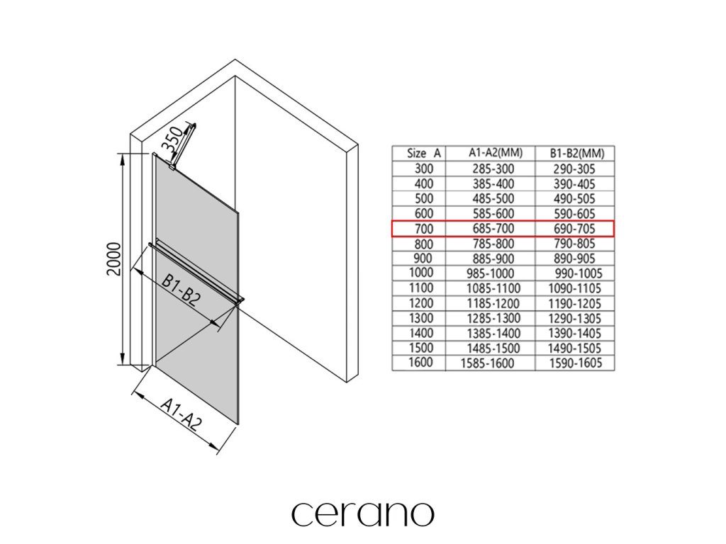 V rámci této série nabízíme širokou škálu rozměrů, abychom uspokojili různé potřeby našich zákazníků. Všechny sprchové kouty, dveře a zástěny značky Cerano jsou plně kompatibilní se sprchovými vaničkami Cerano ve stejných rozměrech, což zajišťuje bezproblémovou instalaci a dokonalé sladění. Sprchový kout lze navíc instalovat flexibilně – buď na odpovídající sprchovou vaničku, nebo přímo na podlahu podle vašich preferencí a možností koupelny.