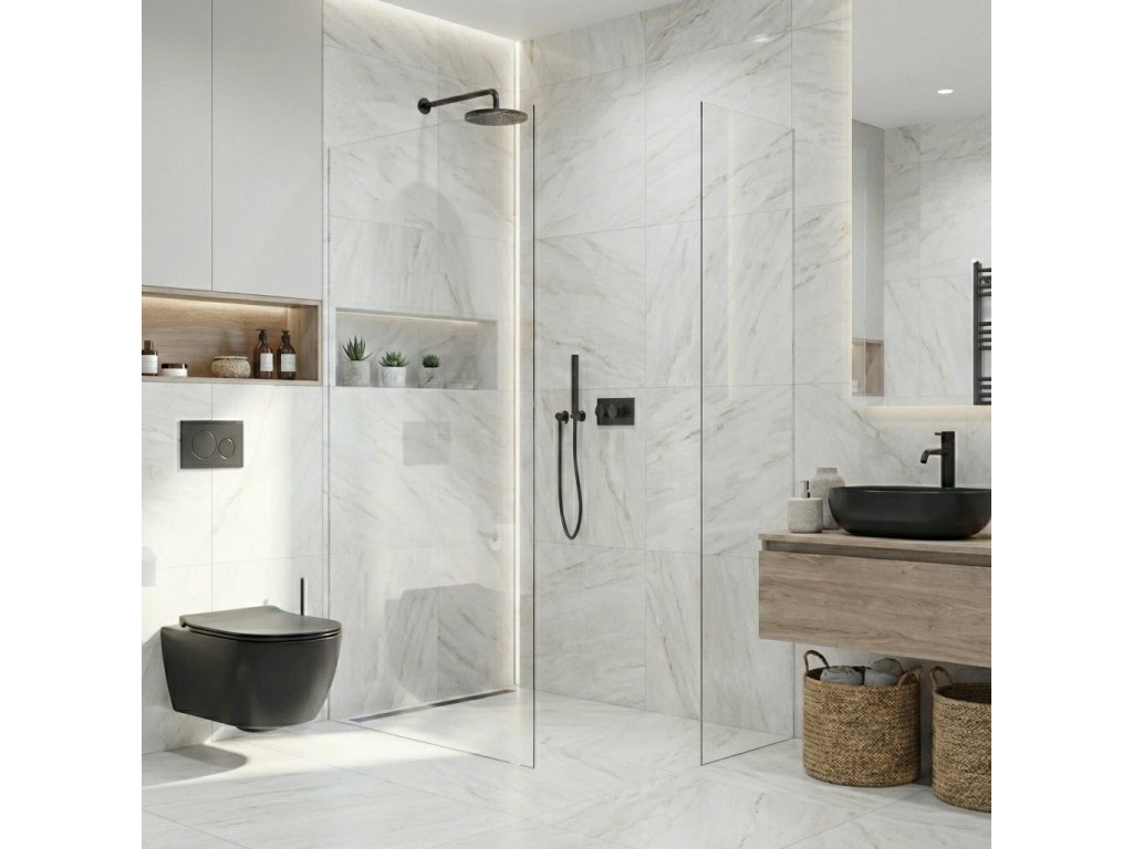 Díky promyšlené konstrukci je sklo uchyceno skrytě do profilů, které lze zapustit zcela nebo částečně ( až 14 mm do obkladů či dlažby). Bez rušivých vzpěr tak vzniká čisté, elegantní řešení, které podtrhne moderní vzhled koupelny a dodá prostoru maximální vizuální lehkost.