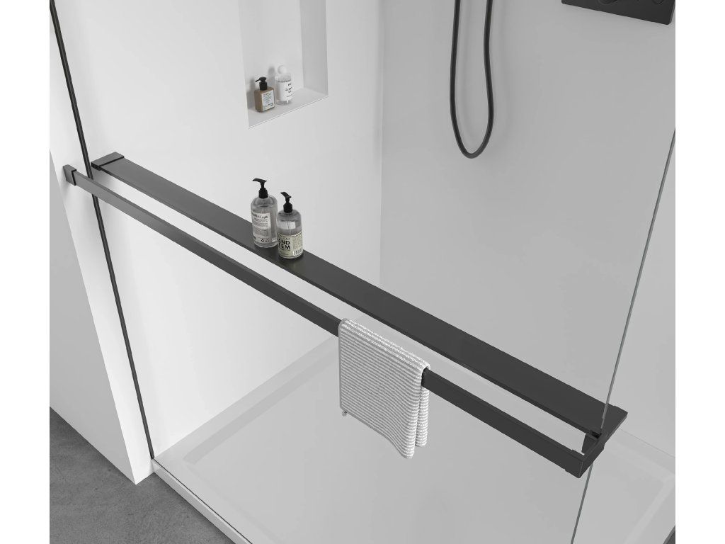 Chytré řešení 2v1 pro sprchové zástěny. Z vnější strany držák na ručníky, zevnitř praktická polička na kosmetiku a drobnosti – vše hned po ruce. Vhodné pro sprchové zástěny s maximální tloušťkou skla 8 mm. Nastavitelná šířka od 30 do 160 cm podle typu zástěny. Úspora místa, moderní vzhled a praktické využití v jednom.