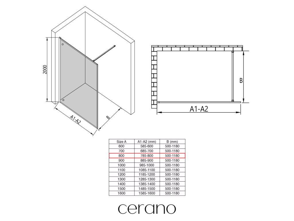 V rámci této série nabízíme širokou škálu rozměrů, abychom uspokojili různé potřeby našich zákazníků. Všechny sprchové kouty, dveře a zástěny značky Cerano jsou plně kompatibilní se sprchovými vaničkami Cerano ve stejných rozměrech, což zajišťuje bezproblémovou instalaci a dokonalé sladění. Sprchový kout lze navíc instalovat flexibilně – buď na odpovídající sprchovou vaničku, nebo přímo na podlahu podle vašich preferencí a možností koupelny.