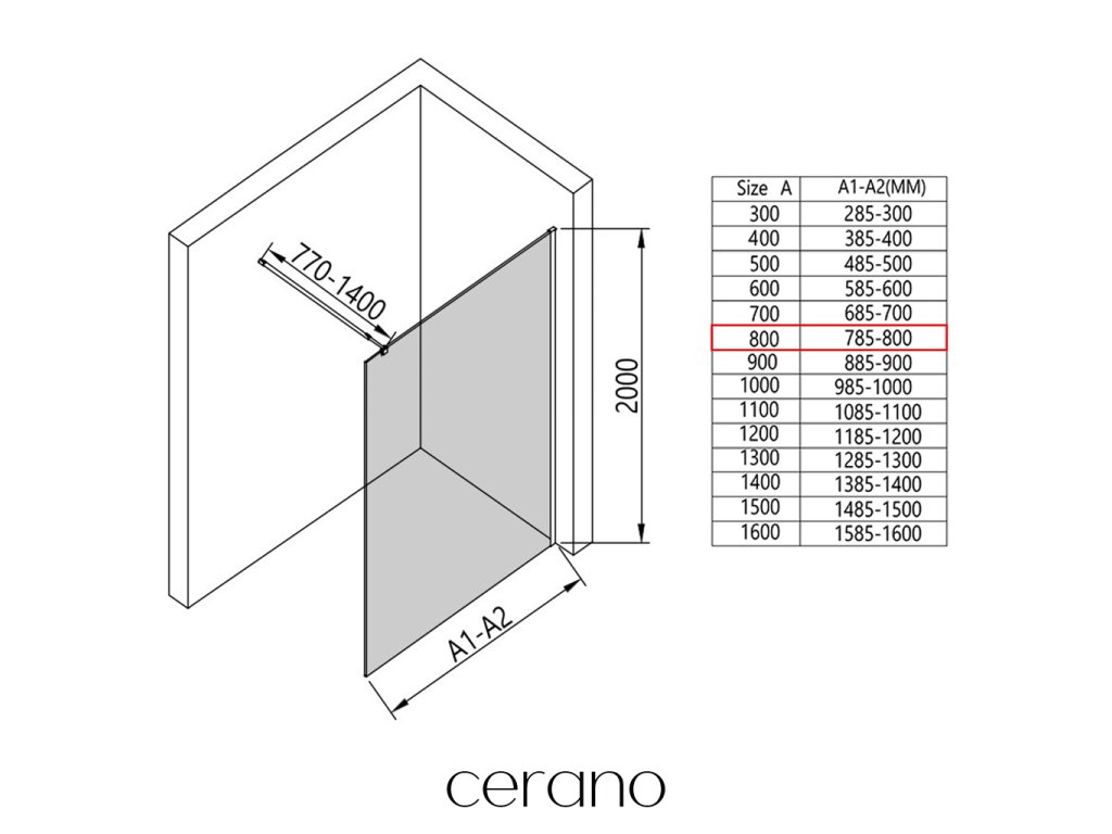 V rámci této série nabízíme širokou škálu rozměrů, abychom uspokojili různé potřeby našich zákazníků. Všechny sprchové kouty, dveře a zástěny značky Cerano jsou plně kompatibilní se sprchovými vaničkami Cerano ve stejných rozměrech, což zajišťuje bezproblémovou instalaci a dokonalé sladění. Sprchový kout lze navíc instalovat flexibilně – buď na odpovídající sprchovou vaničku, nebo přímo na podlahu podle vašich preferencí a možností koupelny.