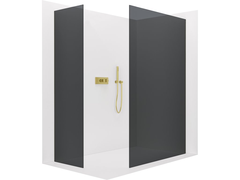 CERANO - Sprchová zástěna Walk-in Crystal T L/P - 8 mm - bezvzpěrový systém - zlatá kartáčovaná, grafitové sklo - 90x90x200 cm