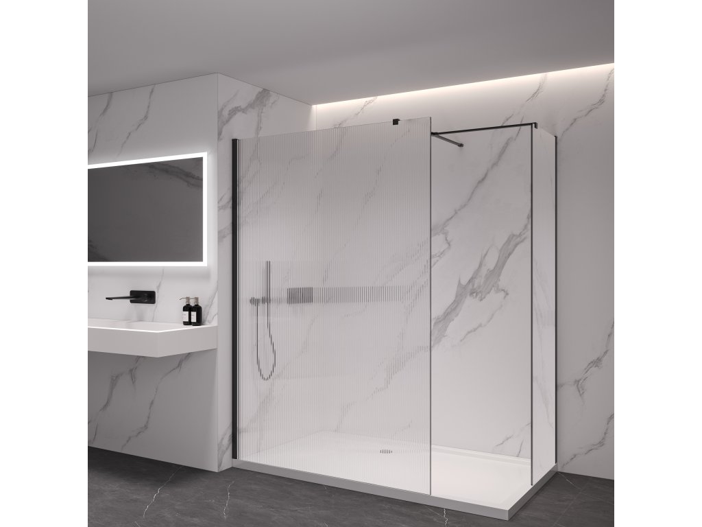 CERANO - Sprchová zástěna Walk-in Onyx T L/P - 8 mm - hranatá vzpěra - černá matná, rýhované sklo - 90x50x200 cm