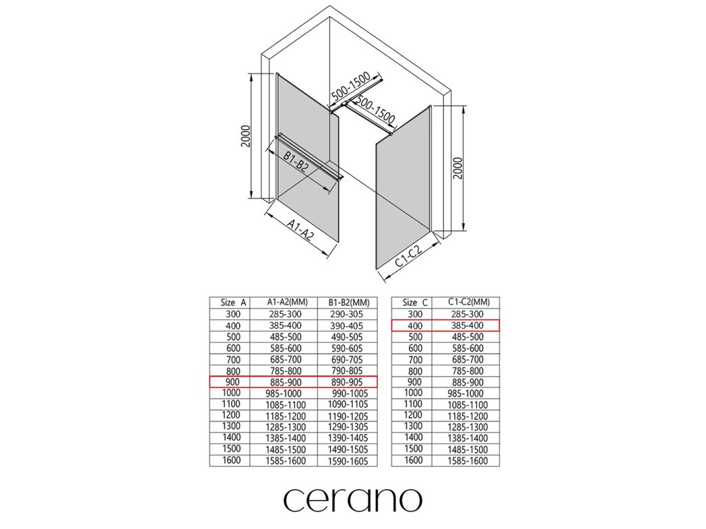 V rámci této série nabízíme širokou škálu rozměrů, abychom uspokojili různé potřeby našich zákazníků. Všechny sprchové kouty, dveře a zástěny značky Cerano jsou plně kompatibilní se sprchovými vaničkami Cerano ve stejných rozměrech, což zajišťuje bezproblémovou instalaci a dokonalé sladění. Sprchový kout lze navíc instalovat flexibilně – buď na odpovídající sprchovou vaničku, nebo přímo na podlahu podle vašich preferencí a možností koupelny.