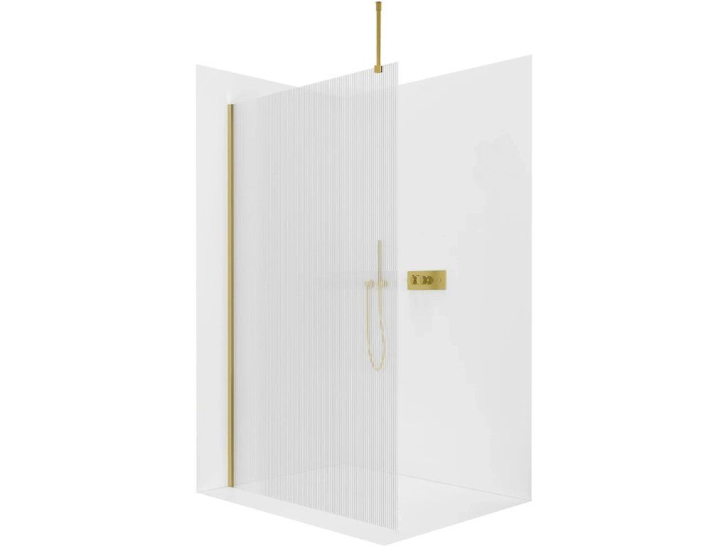 CERANO - Sprchová zástěna Walk-in Onyx Top Round L/P - 8 mm - kulatá vzpěra - zlatá, rýhované sklo - 90x200 cm