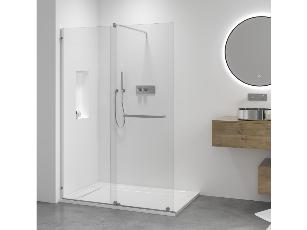 Cerano MEDIN je dvoudílná sprchová zástěna typu walk-in, která spojuje moderní design, bezbariérové provedení a chytré využití prostoru. Kombinace pevného skla a posuvného dílu umožňuje pohodlný vstup bez nároků na další prostor.