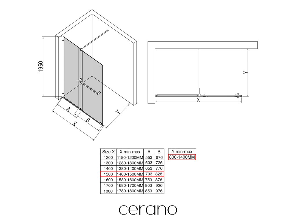 CERANO - Sprchová zástěna Walk-in Medin L/P - 8 mm - chrom, transparentní sklo - 150x195 cm - dvoudílná posuvná