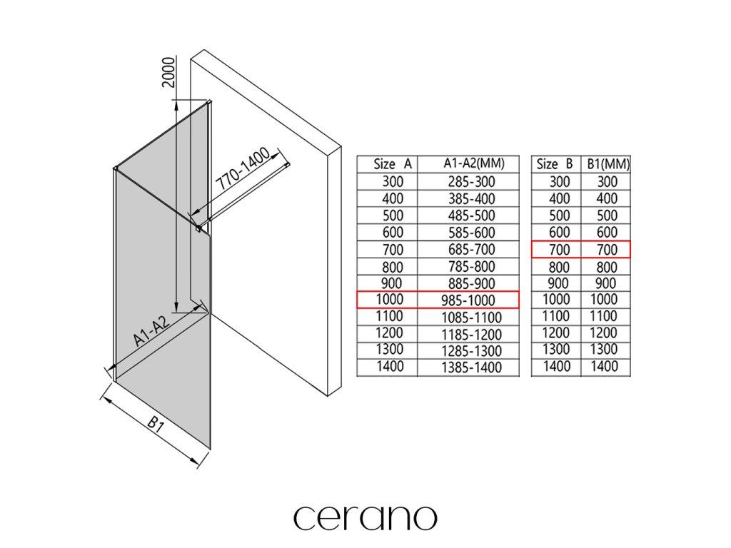 V rámci této série nabízíme širokou škálu rozměrů, abychom uspokojili různé potřeby našich zákazníků. Všechny sprchové kouty, dveře a zástěny značky Cerano jsou plně kompatibilní se sprchovými vaničkami Cerano ve stejných rozměrech, což zajišťuje bezproblémovou instalaci a dokonalé sladění. Sprchový kout lze navíc instalovat flexibilně – buď na odpovídající sprchovou vaničku, nebo přímo na podlahu podle vašich preferencí a možností koupelny.