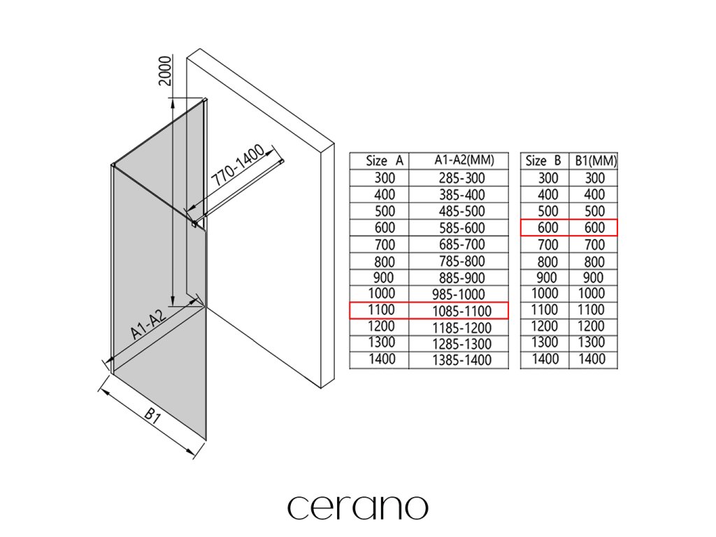 V rámci této série nabízíme širokou škálu rozměrů, abychom uspokojili různé potřeby našich zákazníků. Všechny sprchové kouty, dveře a zástěny značky Cerano jsou plně kompatibilní se sprchovými vaničkami Cerano ve stejných rozměrech, což zajišťuje bezproblémovou instalaci a dokonalé sladění. Sprchový kout lze navíc instalovat flexibilně – buď na odpovídající sprchovou vaničku, nebo přímo na podlahu podle vašich preferencí a možností koupelny.