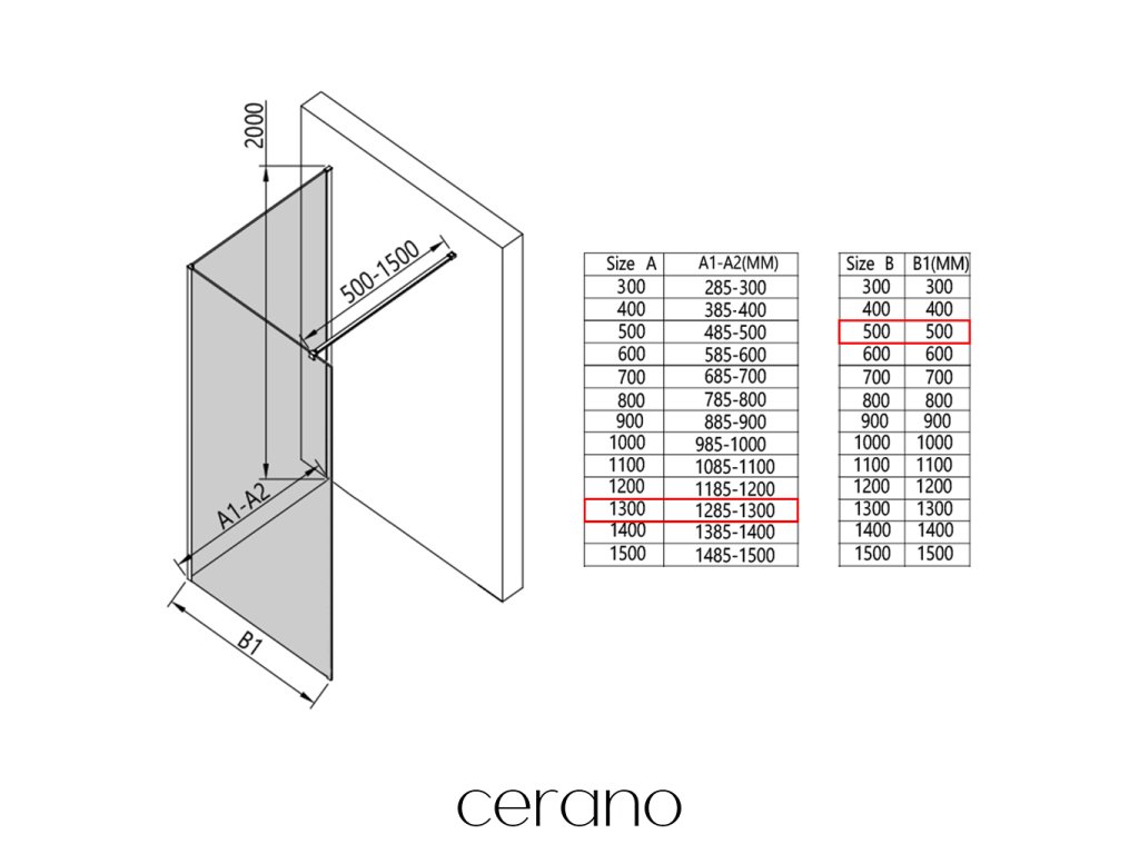 V rámci této série nabízíme širokou škálu rozměrů, abychom uspokojili různé potřeby našich zákazníků. Všechny sprchové kouty, dveře a zástěny značky Cerano jsou plně kompatibilní se sprchovými vaničkami Cerano ve stejných rozměrech, což zajišťuje bezproblémovou instalaci a dokonalé sladění. Sprchový kout lze navíc instalovat flexibilně – buď na odpovídající sprchovou vaničku, nebo přímo na podlahu podle vašich preferencí a možností koupelny.