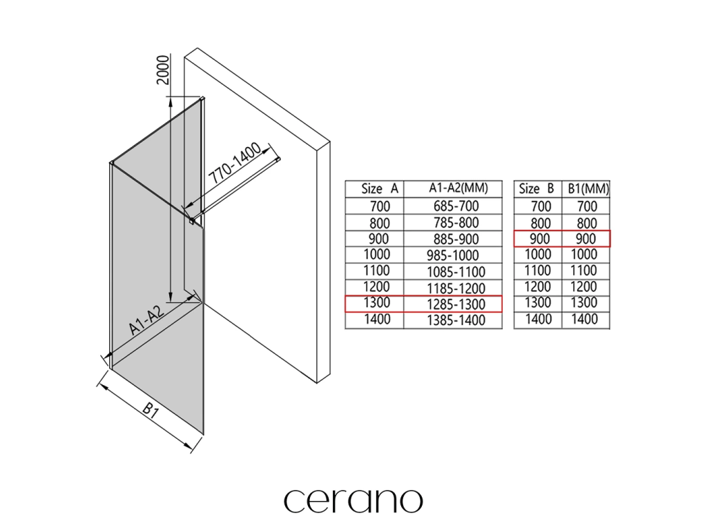 V rámci této série nabízíme širokou škálu rozměrů, abychom uspokojili různé potřeby našich zákazníků. Všechny sprchové kouty, dveře a zástěny značky Cerano jsou plně kompatibilní se sprchovými vaničkami Cerano ve stejných rozměrech, což zajišťuje bezproblémovou instalaci a dokonalé sladění. Sprchový kout lze navíc instalovat flexibilně – buď na odpovídající sprchovou vaničku, nebo přímo na podlahu podle vašich preferencí a možností koupelny.