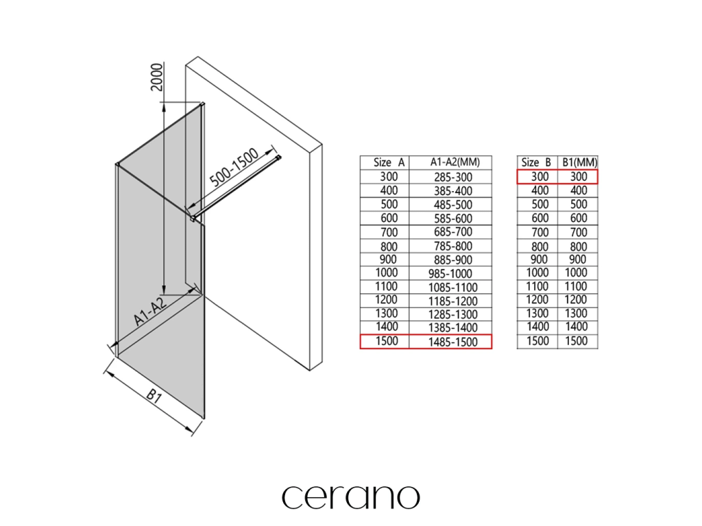 V rámci této série nabízíme širokou škálu rozměrů, abychom uspokojili různé potřeby našich zákazníků. Všechny sprchové kouty, dveře a zástěny značky Cerano jsou plně kompatibilní se sprchovými vaničkami Cerano ve stejných rozměrech, což zajišťuje bezproblémovou instalaci a dokonalé sladění. Sprchový kout lze navíc instalovat flexibilně – buď na odpovídající sprchovou vaničku, nebo přímo na podlahu podle vašich preferencí a možností koupelny.