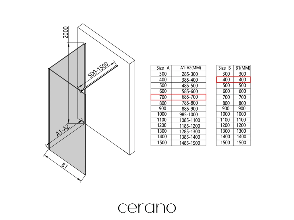 V rámci této série nabízíme širokou škálu rozměrů, abychom uspokojili různé potřeby našich zákazníků. Všechny sprchové kouty, dveře a zástěny značky Cerano jsou plně kompatibilní se sprchovými vaničkami Cerano ve stejných rozměrech, což zajišťuje bezproblémovou instalaci a dokonalé sladění. Sprchový kout lze navíc instalovat flexibilně – buď na odpovídající sprchovou vaničku, nebo přímo na podlahu podle vašich preferencí a možností koupelny.