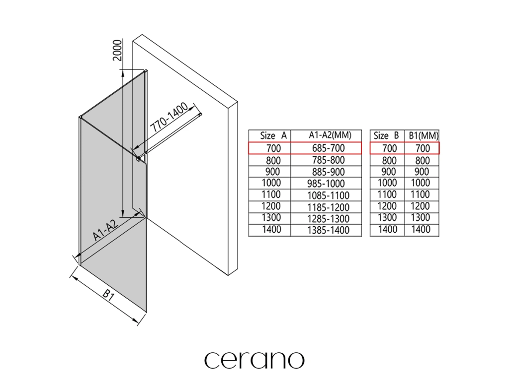 V rámci této série nabízíme širokou škálu rozměrů, abychom uspokojili různé potřeby našich zákazníků. Všechny sprchové kouty, dveře a zástěny značky Cerano jsou plně kompatibilní se sprchovými vaničkami Cerano ve stejných rozměrech, což zajišťuje bezproblémovou instalaci a dokonalé sladění. Sprchový kout lze navíc instalovat flexibilně – buď na odpovídající sprchovou vaničku, nebo přímo na podlahu podle vašich preferencí a možností koupelny.