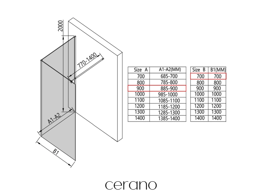 V rámci této série nabízíme širokou škálu rozměrů, abychom uspokojili různé potřeby našich zákazníků. Všechny sprchové kouty, dveře a zástěny značky Cerano jsou plně kompatibilní se sprchovými vaničkami Cerano ve stejných rozměrech, což zajišťuje bezproblémovou instalaci a dokonalé sladění. Sprchový kout lze navíc instalovat flexibilně – buď na odpovídající sprchovou vaničku, nebo přímo na podlahu podle vašich preferencí a možností koupelny.