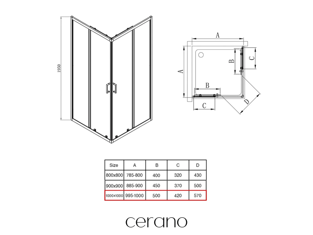 CERANO - Sprchový kout Fabrizio L/P - 5 mm - černá matná, transparentní sklo - 100x100x195 cm - posuvný