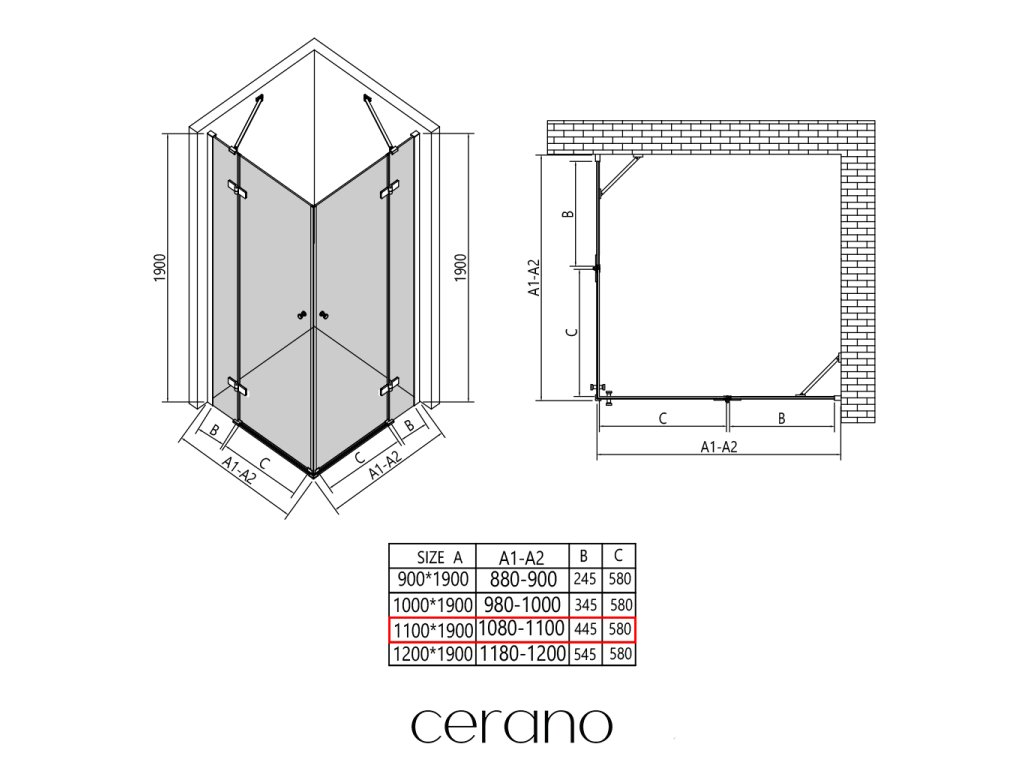 V rámci této série nabízíme širokou škálu rozměrů, abychom uspokojili různé potřeby našich zákazníků. Všechny sprchové kouty, dveře a zástěny značky CERANO jsou plně kompatibilní se sprchovými vaničkami CERANO ve stejných rozměrech, což zajišťuje bezproblémovou instalaci a dokonalé sladění. Sprchový kout lze navíc instalovat flexibilně – buď na odpovídající sprchovou vaničku, nebo přímo na podlahu podle vašich preferencí a možností koupelny.