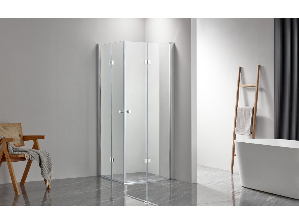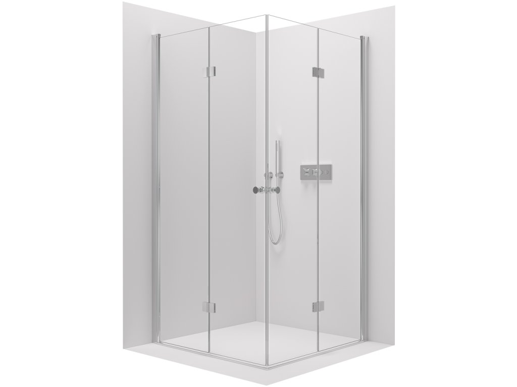 Dveře využívají skládací (zalamovací) systém otevírání, který je ideální pro menší koupelny s omezeným prostorem před sprchovým koutem. Dveře jsou zavěšeny na zapuštěných pantech se systémem pneumatického přizvednutí.