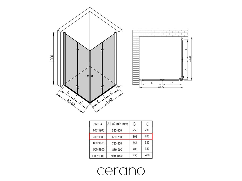 V rámci této série nabízíme širokou škálu rozměrů, abychom uspokojili různé potřeby našich zákazníků. Všechny sprchové kouty, dveře a zástěny značky Cerano jsou plně kompatibilní se sprchovými vaničkami Cerano ve stejných rozměrech, což zajišťuje bezproblémovou instalaci a dokonalé sladění. Sprchový kout lze navíc instalovat flexibilně – buď na odpovídající sprchovou vaničku, nebo přímo na podlahu podle vašich preferencí a možností koupelny.