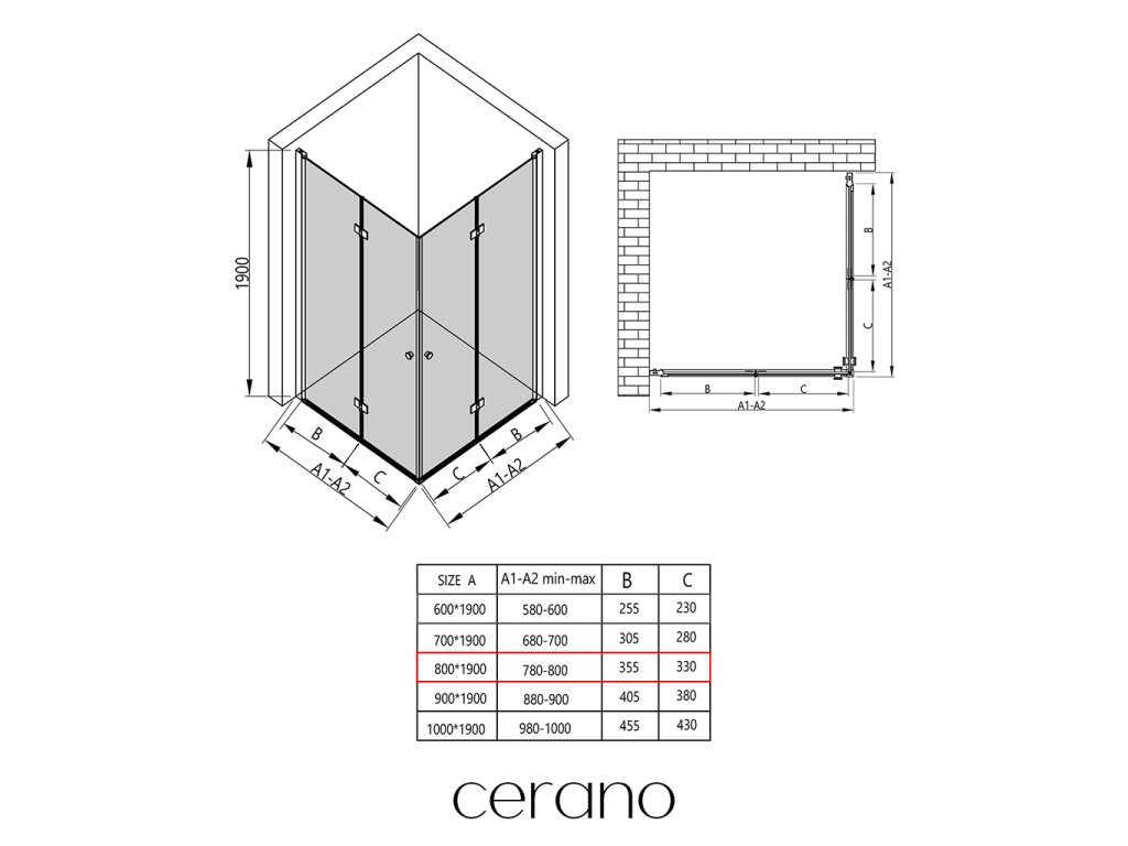 V rámci této série nabízíme širokou škálu rozměrů, abychom uspokojili různé potřeby našich zákazníků. Všechny sprchové kouty, dveře a zástěny značky Cerano jsou plně kompatibilní se sprchovými vaničkami Cerano ve stejných rozměrech, což zajišťuje bezproblémovou instalaci a dokonalé sladění. Sprchový kout lze navíc instalovat flexibilně – buď na odpovídající sprchovou vaničku, nebo přímo na podlahu podle vašich preferencí a možností koupelny.