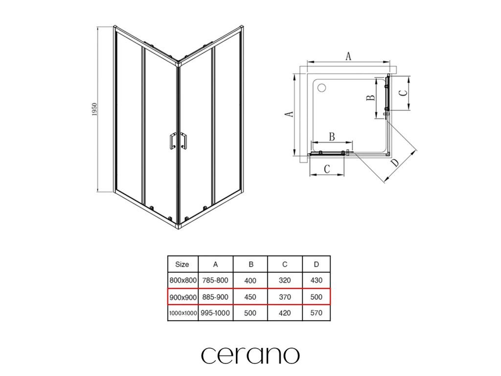 CERANO - Sprchový kout Fabrizio L/P - 5 mm - chrom, transparentní sklo - 90x90x195 cm - posuvný
