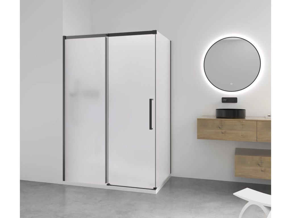 CERANO - Sprchový kout Lantono - levá - 8 mm - Soft-Close - černá matná, mléčné sklo - 100x80 cm - posuvný