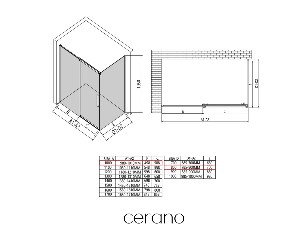 V rámci této série nabízíme širokou škálu rozměrů, abychom uspokojili různé potřeby našich zákazníků. Všechny sprchové kouty, dveře a zástěny značky CERANO jsou plně kompatibilní se sprchovými vaničkami CERANO ve stejných rozměrech, což zajišťuje bezproblémovou instalaci a dokonalé sladění. Sprchový kout lze navíc instalovat flexibilně – buď na odpovídající sprchovou vaničku, nebo přímo na podlahu podle vašich preferencí a možností koupelny.