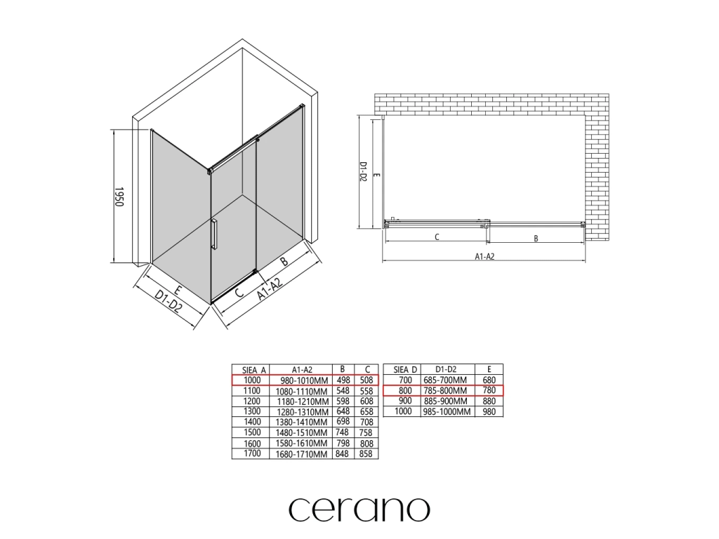 V rámci této série nabízíme širokou škálu rozměrů, abychom uspokojili různé potřeby našich zákazníků. Všechny sprchové kouty, dveře a zástěny značky CERANO jsou plně kompatibilní se sprchovými vaničkami CERANO ve stejných rozměrech, což zajišťuje bezproblémovou instalaci a dokonalé sladění. Sprchový kout lze navíc instalovat flexibilně – buď na odpovídající sprchovou vaničku, nebo přímo na podlahu podle vašich preferencí a možností koupelny.