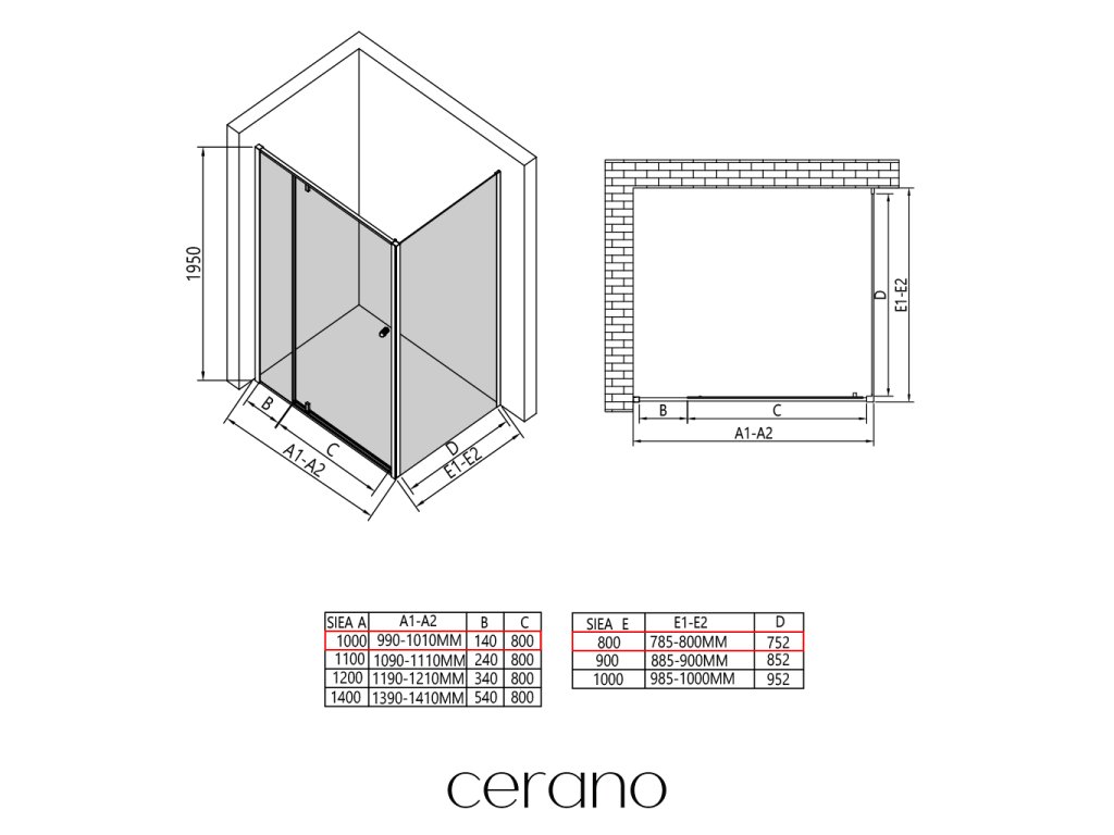 V rámci této série nabízíme širokou škálu rozměrů, abychom uspokojili různé potřeby našich zákazníků. Všechny sprchové kouty, dveře a zástěny značky CERANO jsou plně kompatibilní se sprchovými vaničkami CERANO ve stejných rozměrech, což zajišťuje bezproblémovou instalaci a dokonalé sladění. Sprchový kout lze navíc instalovat flexibilně – buď na odpovídající sprchovou vaničku, nebo přímo na podlahu podle vašich preferencí a možností koupelny.
