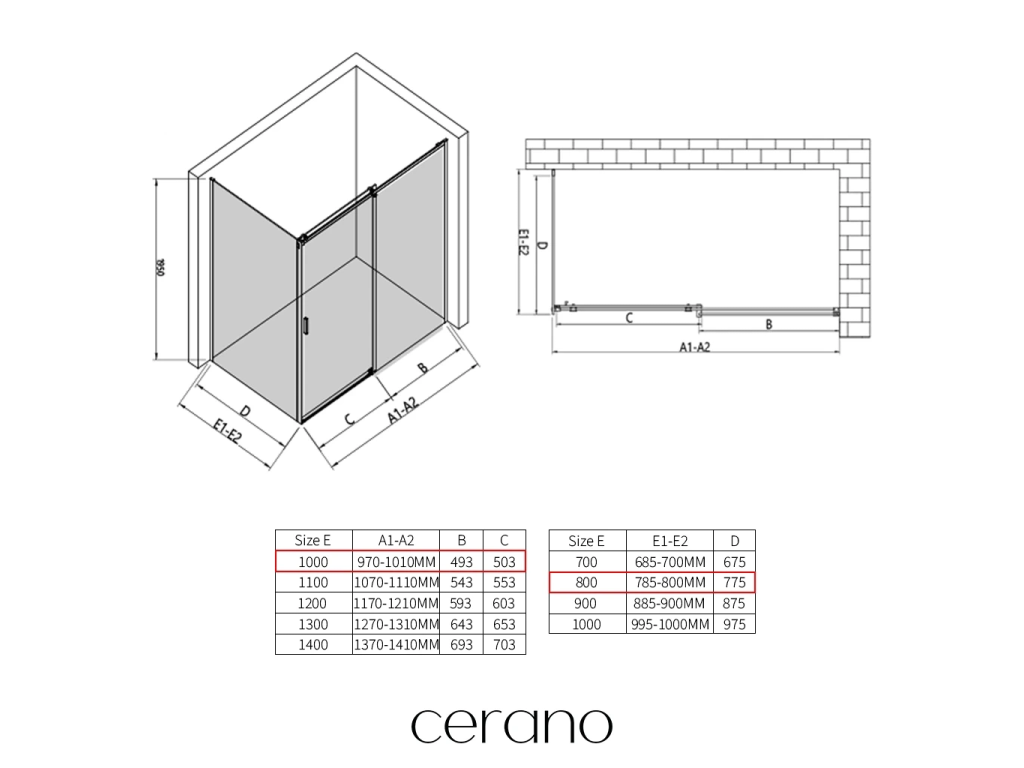 V rámci této série nabízíme širokou škálu rozměrů, abychom uspokojili různé potřeby našich zákazníků. Všechny sprchové kouty, dveře a zástěny značky CERANO jsou plně kompatibilní se sprchovými vaničkami CERANO ve stejných rozměrech, což zajišťuje bezproblémovou instalaci a dokonalé sladění. Sprchový kout lze navíc instalovat flexibilně – buď na odpovídající sprchovou vaničku, nebo přímo na podlahu podle vašich preferencí a možností koupelny.