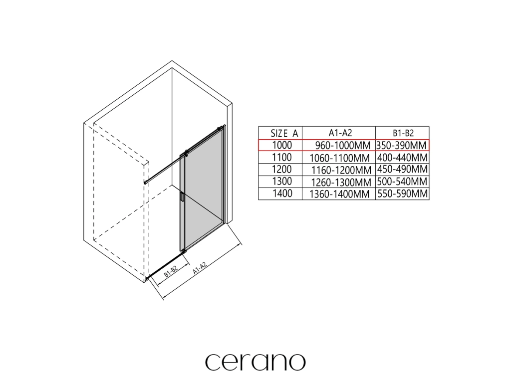 V rámci této série nabízíme širokou škálu rozměrů, abychom uspokojili různé potřeby našich zákazníků. Všechny sprchové kouty, dveře a zástěny značky CERANO jsou plně kompatibilní se sprchovými vaničkami CERANO ve stejných rozměrech, což zajišťuje bezproblémovou instalaci a dokonalé sladění. Sprchový kout lze navíc instalovat flexibilně – buď na odpovídající sprchovou vaničku, nebo přímo na podlahu podle vašich preferencí a možností koupelny.