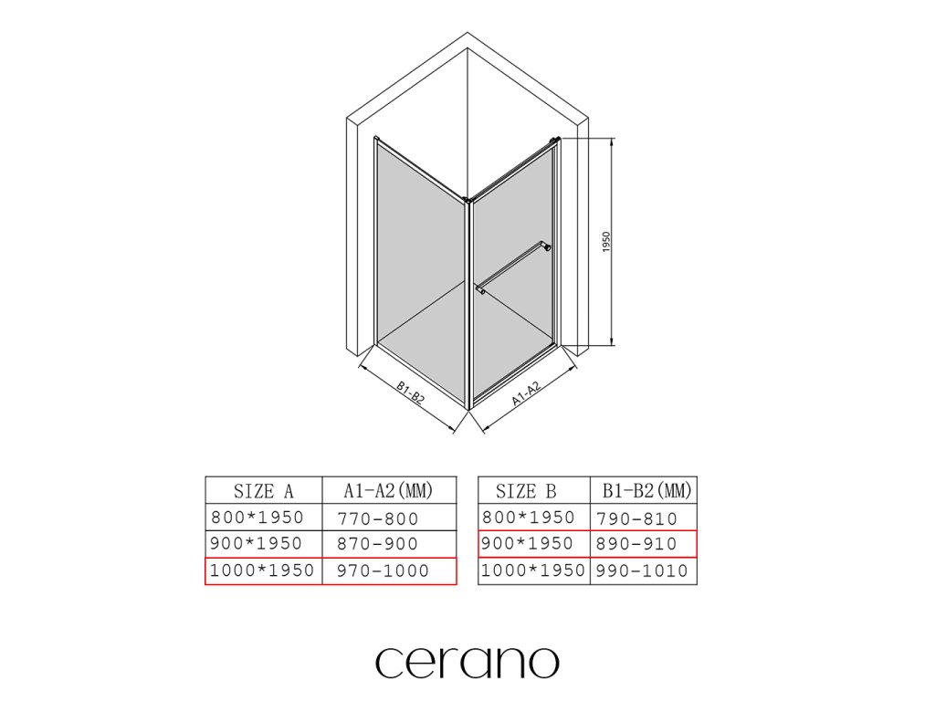 V rámci této série nabízíme širokou škálu rozměrů, abychom uspokojili různé potřeby našich zákazníků. Všechny sprchové kouty, dveře a zástěny značky CERANO jsou plně kompatibilní se sprchovými vaničkami CERANO ve stejných rozměrech, což zajišťuje bezproblémovou instalaci a dokonalé sladění. Sprchový kout lze navíc instalovat flexibilně – buď na odpovídající sprchovou vaničku, nebo přímo na podlahu podle vašich preferencí a možností koupelny.