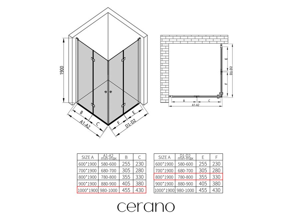 V rámci této série nabízíme širokou škálu rozměrů, abychom uspokojili různé potřeby našich zákazníků. Všechny sprchové kouty, dveře a zástěny značky Cerano jsou plně kompatibilní se sprchovými vaničkami Cerano ve stejných rozměrech, což zajišťuje bezproblémovou instalaci a dokonalé sladění. Sprchový kout lze navíc instalovat flexibilně – buď na odpovídající sprchovou vaničku, nebo přímo na podlahu podle vašich preferencí a možností koupelny.