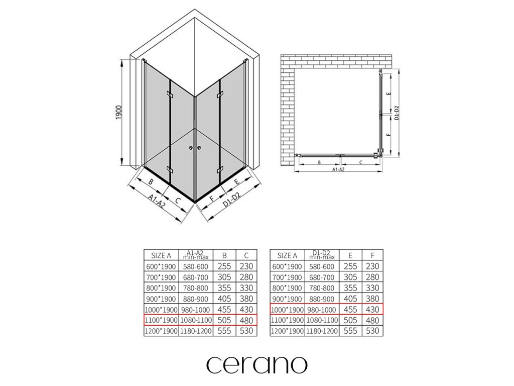 V rámci této série nabízíme širokou škálu rozměrů, abychom uspokojili různé potřeby našich zákazníků. Všechny sprchové kouty, dveře a zástěny značky Cerano jsou plně kompatibilní se sprchovými vaničkami Cerano ve stejných rozměrech, což zajišťuje bezproblémovou instalaci a dokonalé sladění. Sprchový kout lze navíc instalovat flexibilně – buď na odpovídající sprchovou vaničku, nebo přímo na podlahu podle vašich preferencí a možností koupelny.