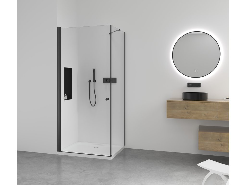Dveře využívají křídlový systém otevírání, který je ideální pro moderní koupelny s dostatkem prostoru pro otevření dveřního křídla. Dveře jsou zavěšeny na zapuštěných pantech se systémem pneumatického přizvednutí.