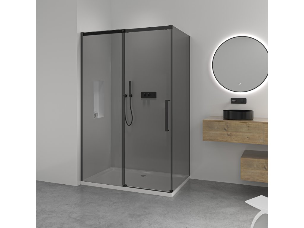 CERANO - Sprchový kout Lantono L/P - 8 mm - Soft-Close - černá matná, grafitové sklo - 120x70x195 cm - posuvný