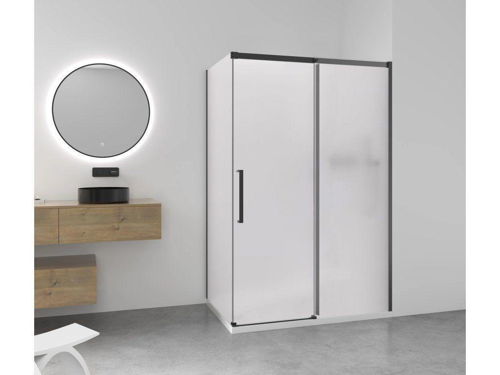 CERANO - Sprchový kout Lantono - pravá - 8 mm - Soft-Close - černá matná, mléčné sklo - 120x80 cm - posuvný